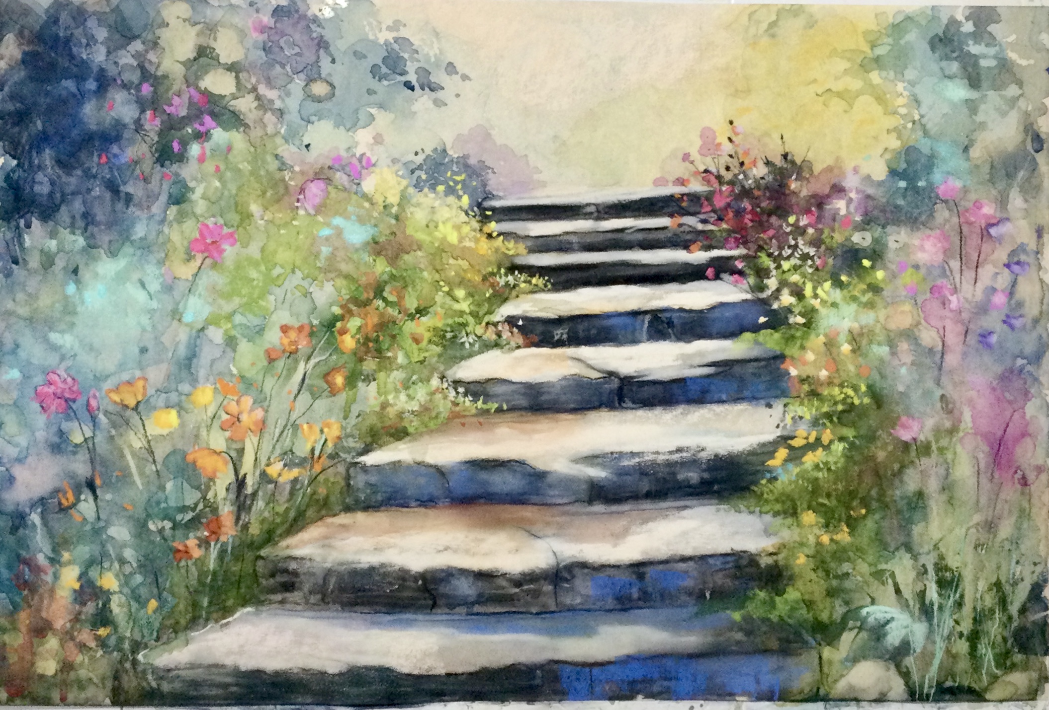 Lovely climb through a path lined by summer flowers